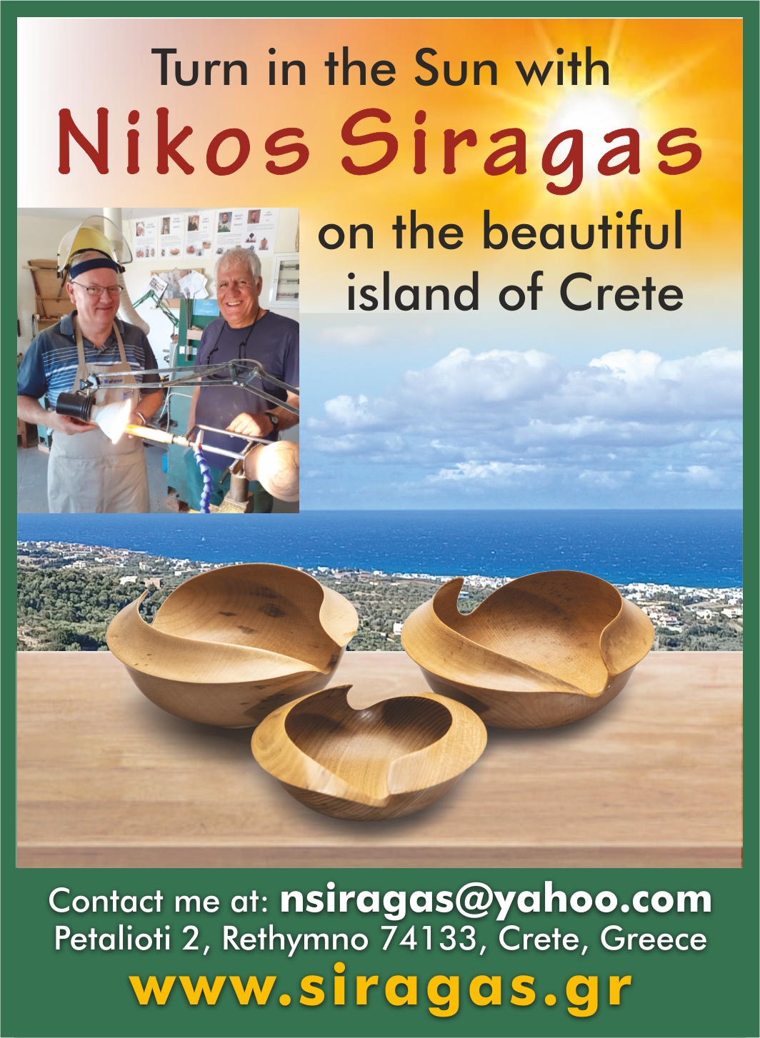 Nikos and Frances, Thank you , thank you! Your warmth and hospitality were amazing. Two of the nicest people we could ever meet. Nikos – an inspiration! You have helped me to see beyond the wood and experience the delight of new techniques. What a wonderful way to spend 2 days and have such great conversations. This will remain with me always. Thank you Lance, Canada
